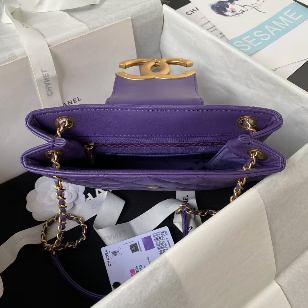 Chanel 24C AS4596 Vintage Logo Quilted Lambskin Shoulder Bag Purple