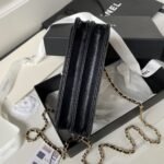 Chanel 24P AP3803 Shiny Crinkled Lambskin Chain Clutch Pearl Handle Black