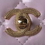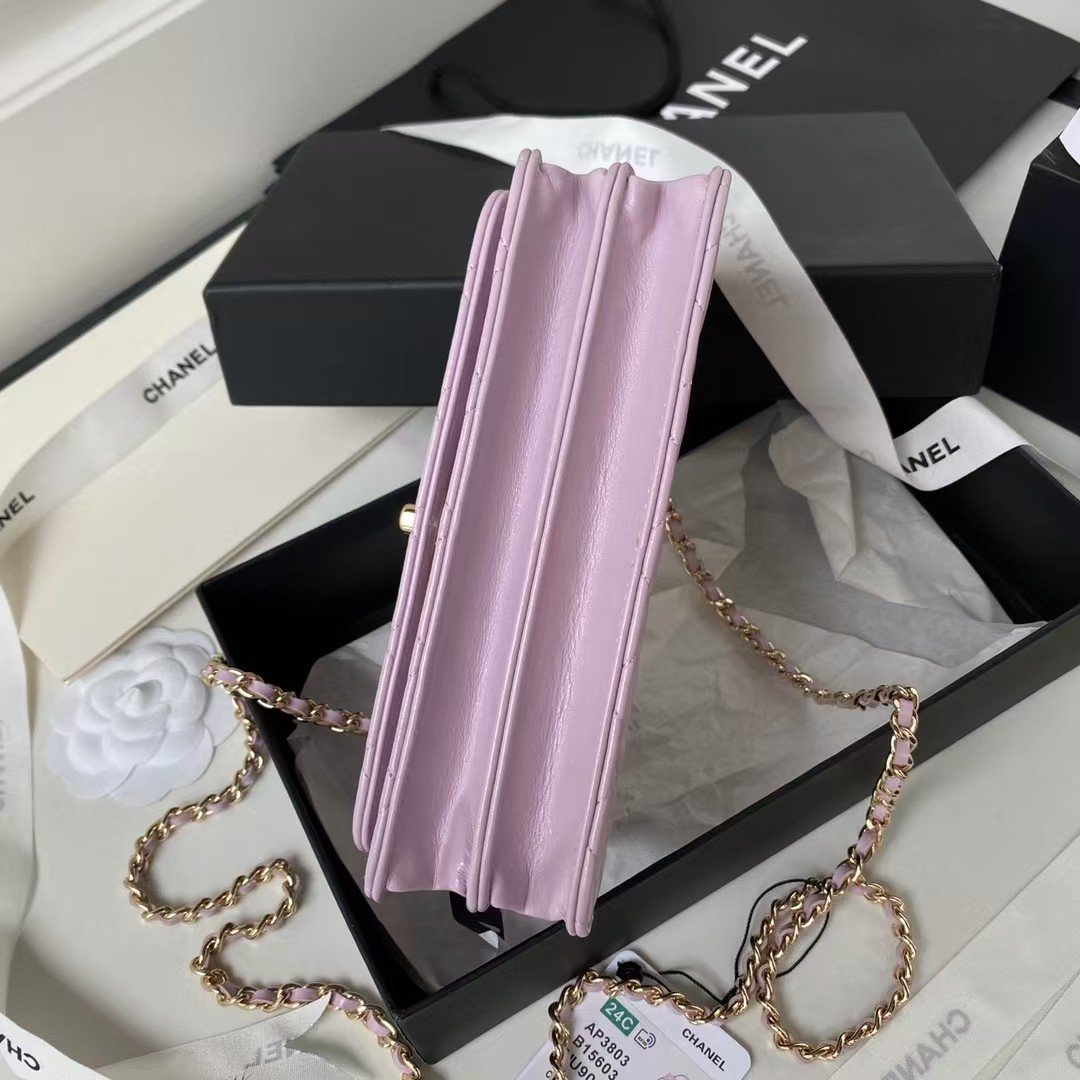 Chanel 24P AP3803 Shiny Crinkled Lambskin Chain Clutch Pearl Handle Purple