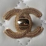 Chanel 24P AP3803 Shiny Crinkled Lambskin Chain Clutch Pearl Handle White