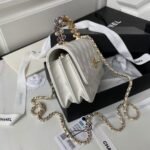 New Chanel 24p Top Handle Woc Pearl Handle Gold Embossed Double C Button Shiny Crinkled Lambskin White