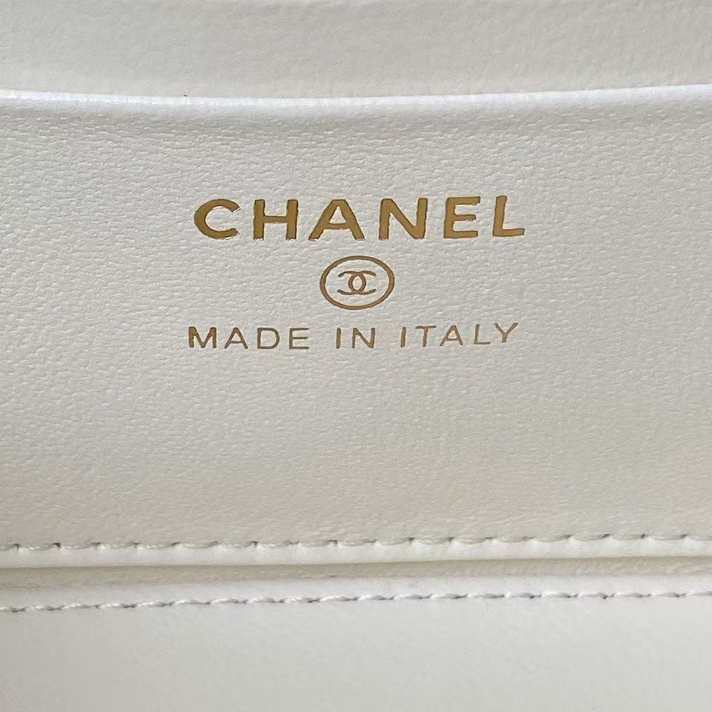 Chanel AP3804 Clutch Lambskin Cosmetic Bag With Pearl Handle White