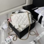 Chanel AP3940 Lambskin Cosmetic Bag Shiny Lambskin Enamel & Gold Metal White