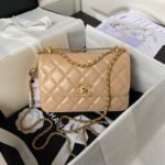 Chanel AS2649 Chain Bag With Gold Charm Small Vintage Calfskin Bag Beige