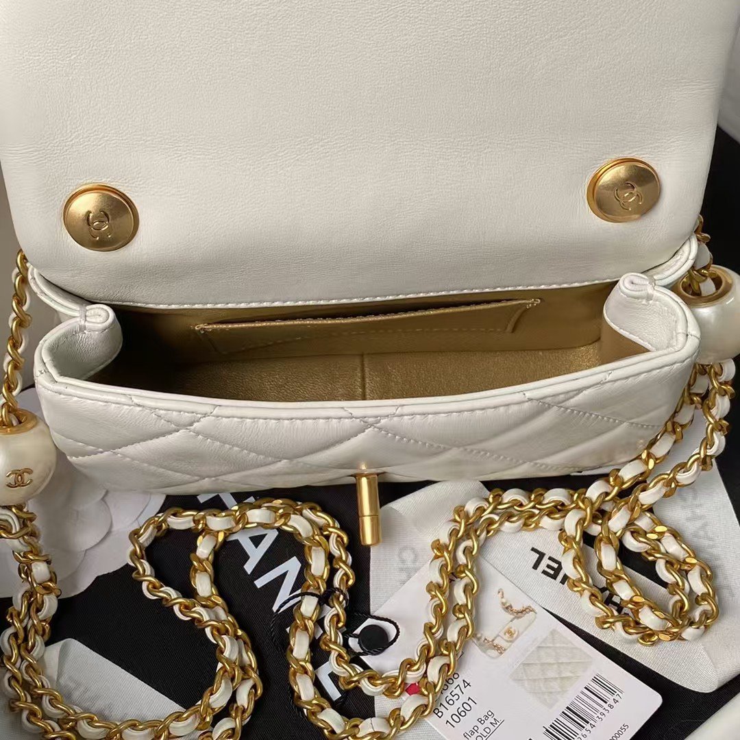 Chanel AS4868 Mini Flap Bag Pearl Lambskin Faux Pearl & Gold Metal White
