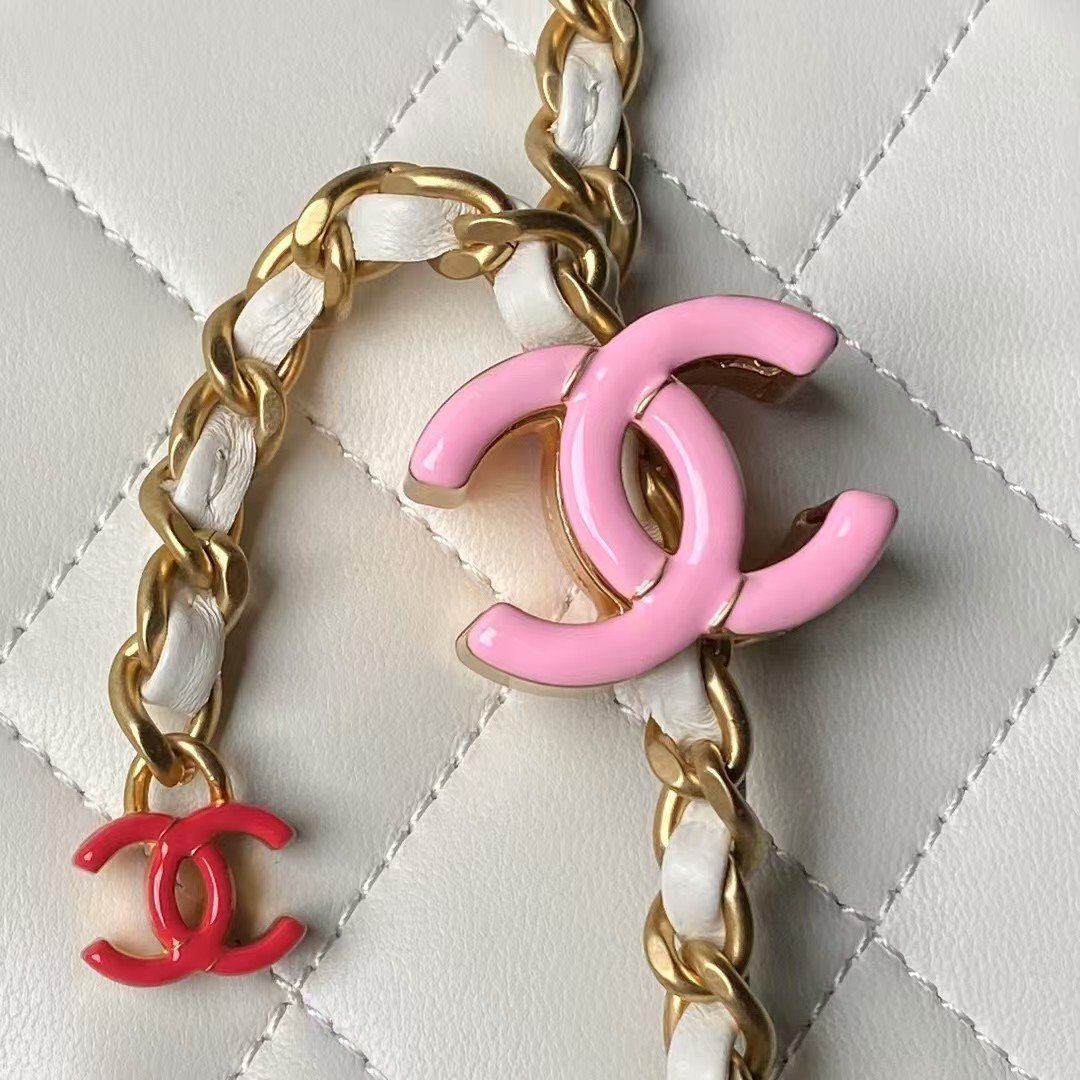 Chanel AS4967 Small Flap Bag Shiny Lambskin Enamel & Gold Metal White