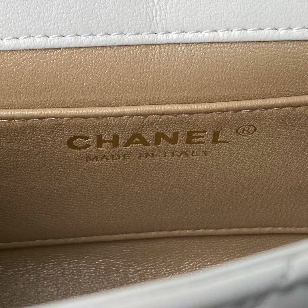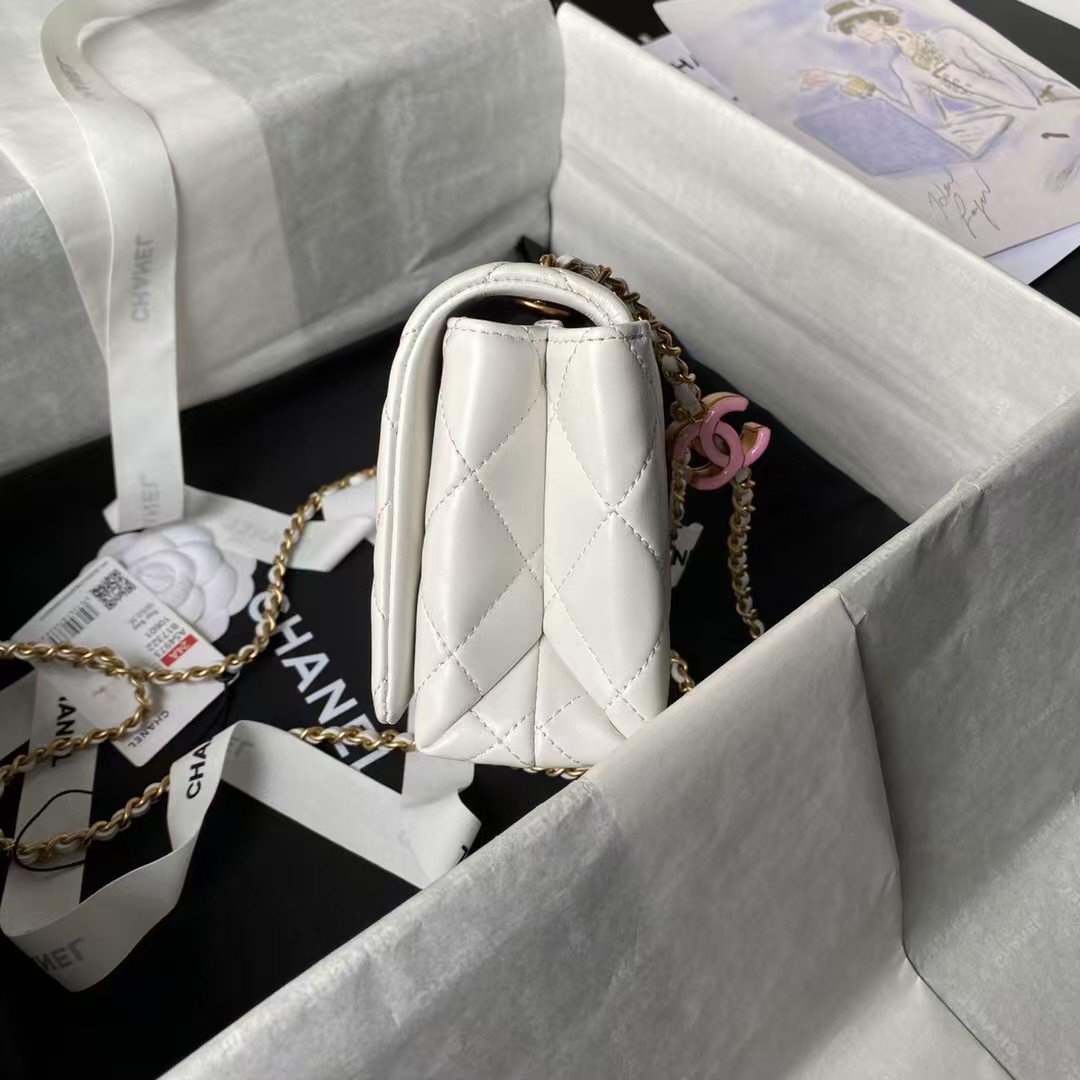 Chanel AS4973 Mini Flap Bag Shiny Lambskin Enamel & Gold-Tone Metal White