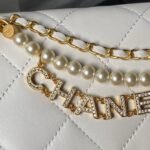Chanel AS4986 Mini Flap bag Shiny Lambskin Imitation Pearls & Gold-Tone Metal White