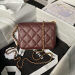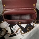 Chanel AS4986 Mini Flap bag Shiny Lambskin Imitation Pearls & Gold-Tone Metal Wine Red
