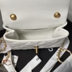 Chanel AS5001 Mini Flap Bag Top Handle Shiny Lambskin Imitation Pearl & Gold Metal White