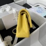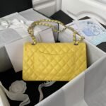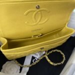 This medium classic double flap bag is crafted in yellow caviar leather with silver-tone hardware, featuring the signature CC turnlock closure on the front flap, half-moon back pocket, adjustable interwoven silver-tone chain and yellow leather shoulder strap.