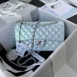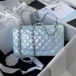 This medium classic double flap bag is crafted in ombre lambskin leather with silver-tone hardware, featuring the signature CC turnlock closure on the front flap, half-moon back pocket, adjustable interwoven silver-tone chain and ombre leather shoulder strap.
