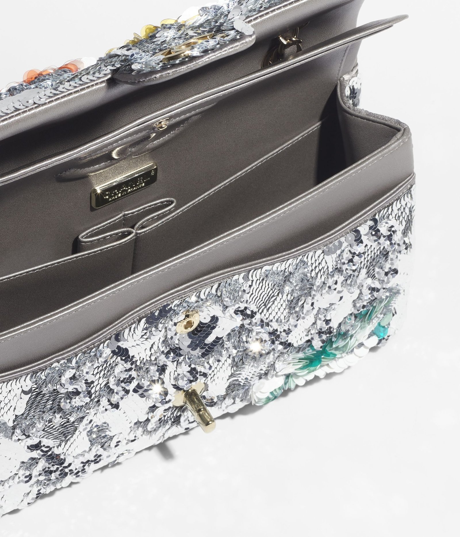 Embroidered Satin, Sequins, Glass Pearls & Silver-Tone Metal