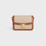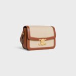 CLASSIQUE TRIOMPHE BAG IN TEXTILE AND CALFSKIN NATURAL / TAN