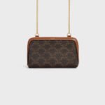 CLUTCH WITH CHAIN IN TRIOMPHE CANVAS AND LAMBSKIN TAN