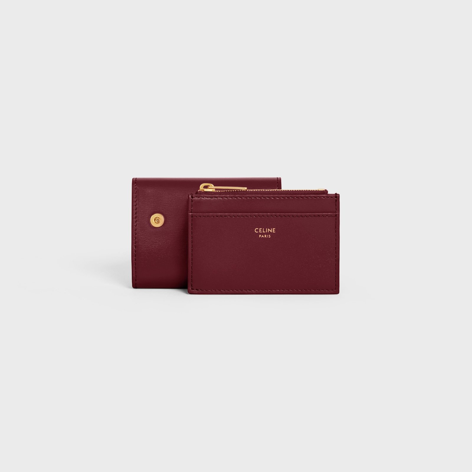 COMPACT WALLET WITH COIN TRIOMPHE IN SHINY CALFSKIN LIGHT BURGUNDY