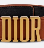A bold and elegant look, the D-Fence belt is available in a reversible variation thanks to its removable buckle. Crafted in smooth calfskin featuring golden saddle on one side and black on the other, the style is enhanced by an antique gold-finish metal Dior buckle. The design also features two removable loops that can be worn in an either tonal or contrasting fashion. Highlighting the waist with elegance, the belt will coordinate well with jeans, a skirt or a dress.