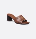 The D-Lane heeled slide is an emblematic style with a timeless look. The camel openwork Microcannage calfskin upper is adorned with a gold-finish metal Christian Dior Paris signature for an unmistakable touch. The leather insole offers ultimate comfort, while the 5.5-cm (2-inch) cylindrical heel will lend a refined element to this season’s outfits.