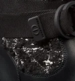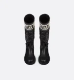 The D-Major boot showcases bold, modern appeal. Joining black and white Cannage tweed with black calfskin, the style is enhanced by an embroidered Christian Dior Paris band inspired by the Dior Book Tote. The adjustable strap highlighting the ankle and the notched sole in ultra-lightweight rubber complete the shoe.