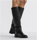 The D-Town boot is a style with a timeless look. The tubular silhouette crafted in black supple calfskin is embellished with a gold-finish metal Christian Dior Paris signature on the side. The refined shoe will elevate any look of the season.
