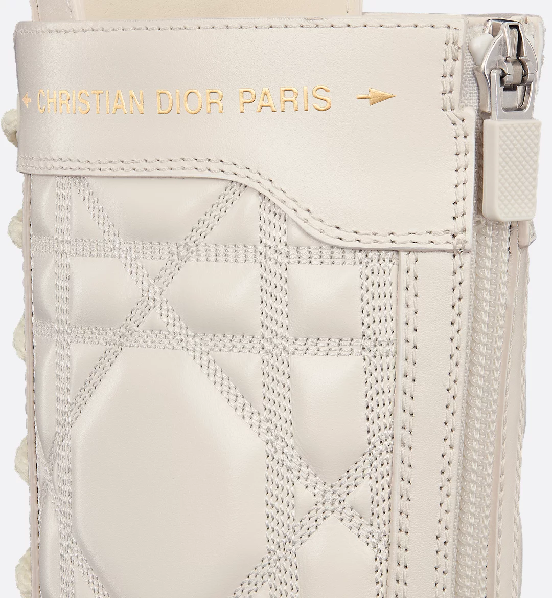 New for the Cruise 2024 collection, the D-Unit ankle boot is a bold, modern creation. Crafted in white calfskin, it is enhanced by the Cannage motif with a quilted effect achieved by a high frequency technique. The gold-tone Christian Dior Paris signature on the side and ultra-lightweight EVA sole complete the modern ankle boot.