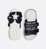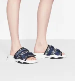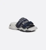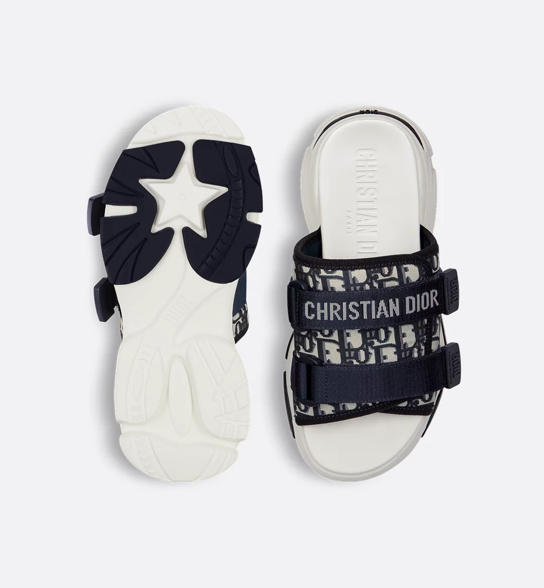 The D-Wander slide is a hybrid design combining both sneaker and sandal. Featuring a comfortable ultralightweight EVA sole with adjustable self-fastening straps, it has an athletic and relaxed silhouette. The deep blue Dior Oblique motif on the upper and the Christian Dior signature on the upper strap complete the look.