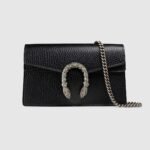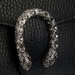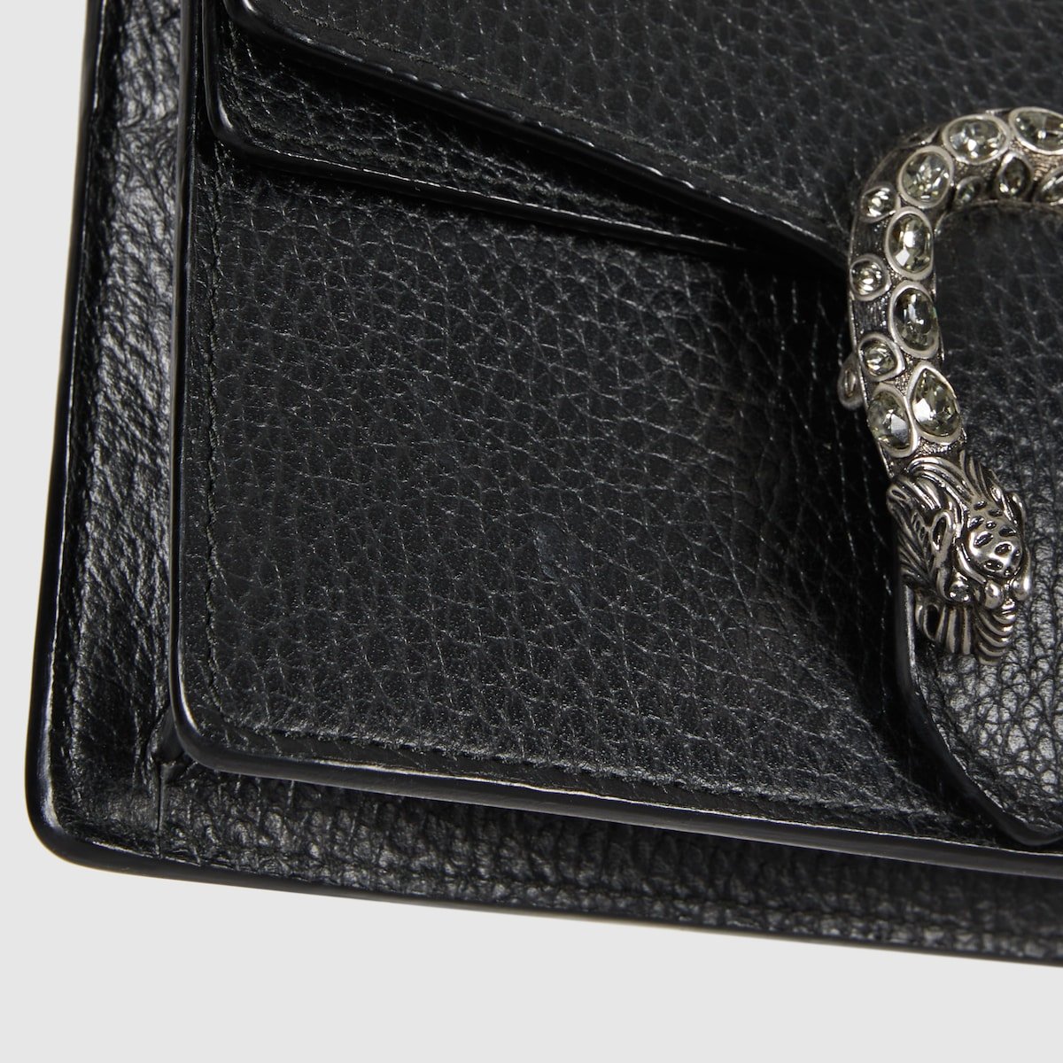 A structured leather chain super mini bag with a key ring that can be used to attach this bag to a separate larger bag. The closure has the textured tiger head spur closure-a unique detail referencing the Greek god Dionysus, who in myth is said to have crossed the river Tigris on a tiger sent to him by Zeus. The tiger head closure is enriched with Swarovski crystal stones. Made in resistant textured leather.