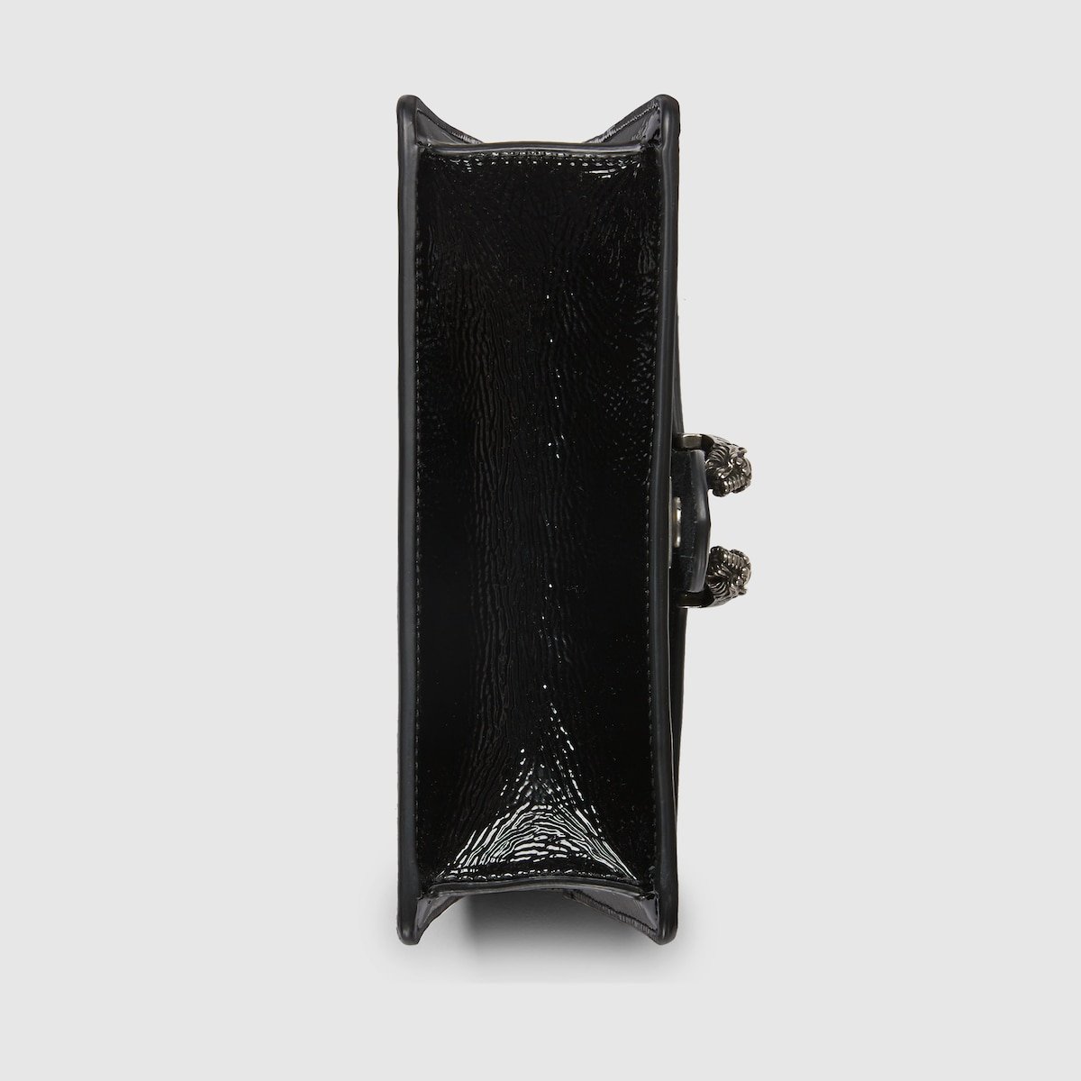 A shiny patent leather brings a fresh take to the Dionysus’ well-structured design, while creating contrast with the signature tiger head hardware in a silver tone. A suede leather lining completes the style with an elegant finish.