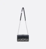 The East-West bag with chain enhances the 30 Montaigne line with a timeless and elegant design crafted in blue Dior Oblique jacquard. The tonal smooth calfskin flap features a silver-finish metal CD clasp, inspired by the seal of a Christian Dior perfume bottle. Other details, like the embossed 30 Montaigne signature on the back, highlight the streamlined style. The removable chain strap has a leather insert that allows the bag to be comfortably carried by hand, worn over the shoulder or crossbody.