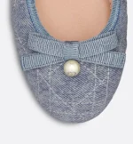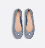 The Dior Ballet flat revisits a timeless style with the House’s couture aesthetic. Crafted in blue denim embroidered with the Cannage motif, it is distinguished by a delicate grosgrain bow on the front adorned with a white CD resin pearl inspired by the iconic Dior Tribales earrings. Featuring a padded leather insole, the supple, comfortable ballet flat will add the finishing touch to any of the season’s looks.