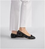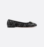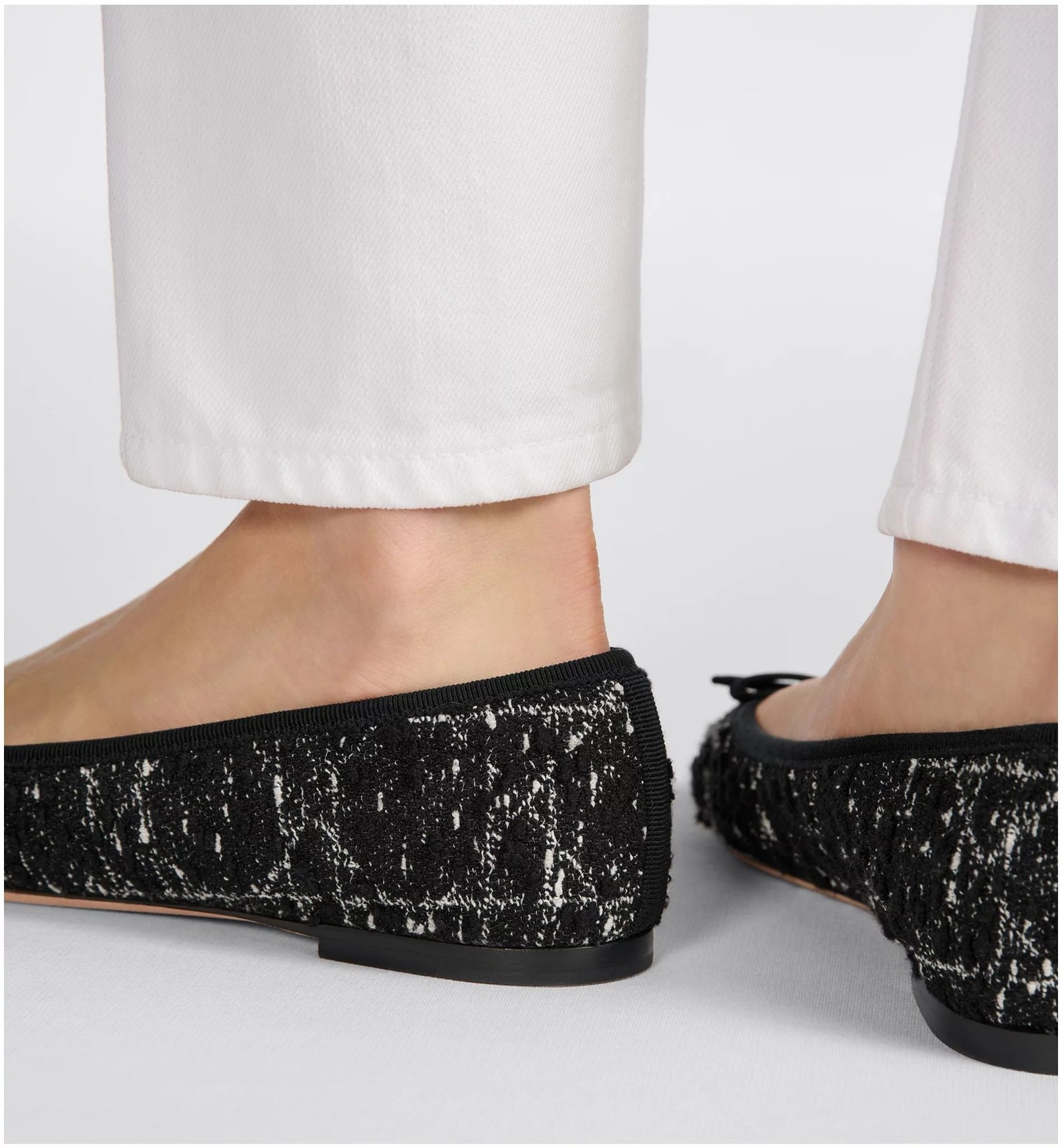 The Dior Ballet flat revisits a timeless style with the House’s couture aesthetic. Crafted in black and white tweed with the Cannage motif, it is distinguished by a delicate grosgrain bow on the front adorned with a white CD resin pearl inspired by the iconic Dior Tribales earrings. Featuring a padded leather insole, the supple, comfortable ballet flat will add the finishing touch to any of the season’s looks.
