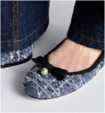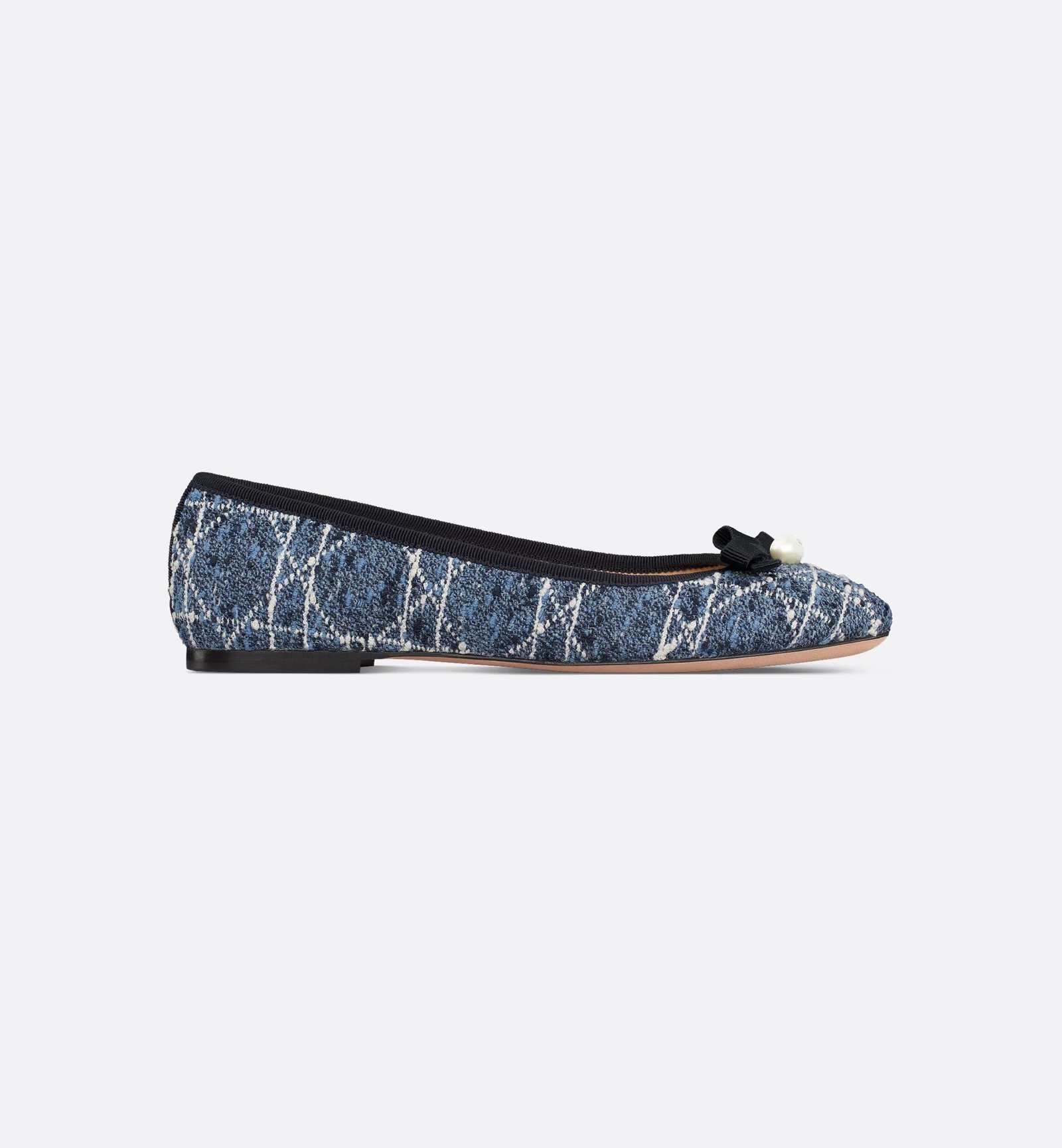 The Dior Ballet flat revisits a timeless style with the House’s couture aesthetic. Crafted in denim blue Cannage tweed, it is distinguished by a delicate grosgrain bow on the front adorned with a white CD resin pearl inspired by the iconic Dior Tribales earrings. Featuring a padded leather insole, the supple, comfortable ballet flat will add the finishing touch to any of the season’s looks.