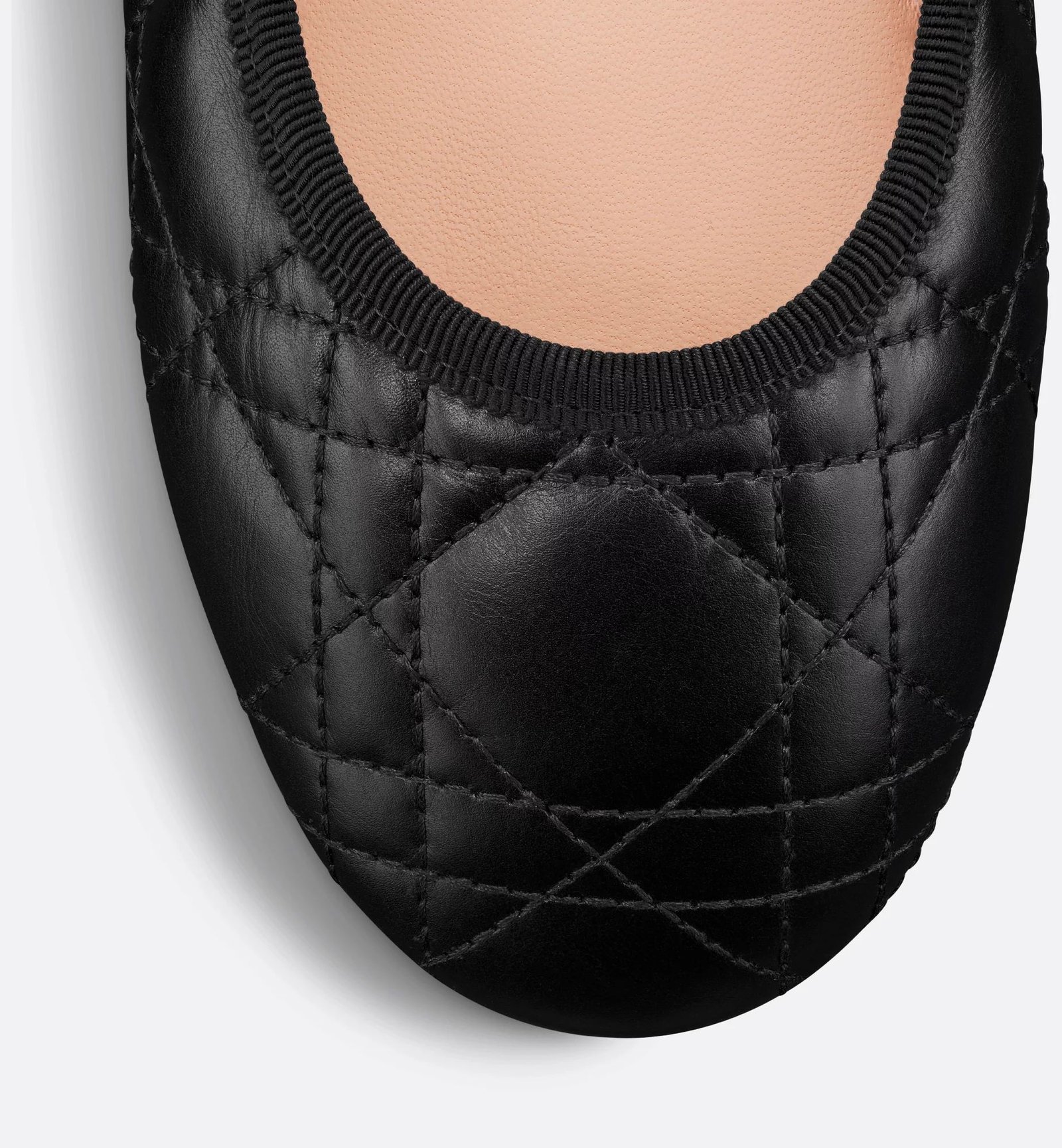 The Dior Ballet flat revisits the Mary Jane with elements of House couture. Crafted in black quilted calfskin with the Cannage motif, it is distinguished by a leather strap with elastic and a white CD resin pearl inspired by the iconic Dior Tribales earrings. Featuring a padded leather insole, the supple, comfortable ballet flat will add the finishing touch to any of the season’s looks.