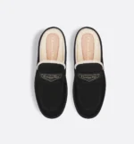 New for Winter 2024, the Dior Boy mule celebrates the House’s exceptional savoir-faire in a fresh take on the timeless loafer style. Crafted in black suede goatskin enhanced by white shearling lining, it showcases a gold-tone Christian Dior Paris signature on a leather tag in the front. Featuring a black rubber sole, the mule is a supple and comfortable creation.