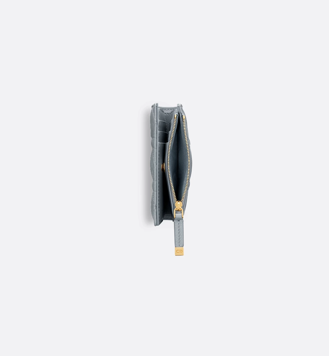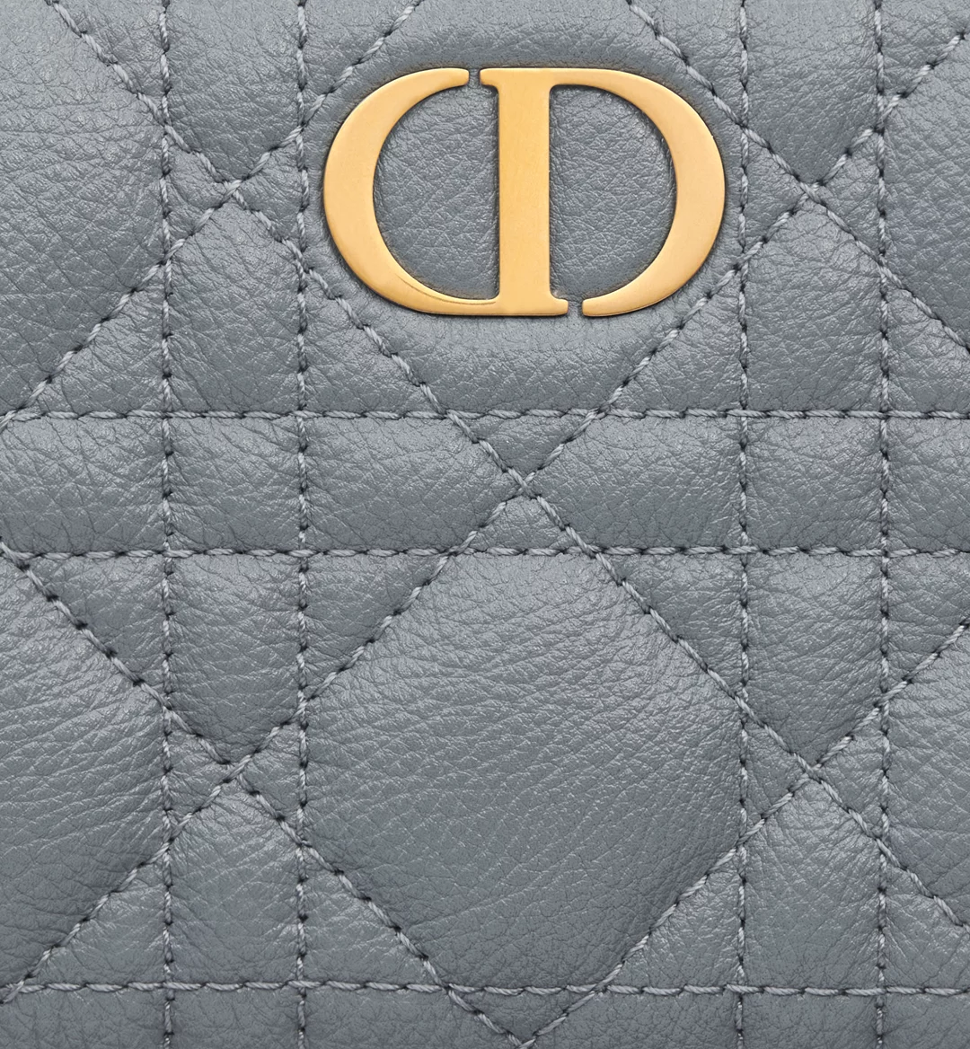 The Dior Caro Dahlia wallet displays the iconic Cannage topstitching in a contemporary variation. Crafted in cloud blue supple calfskin, it has a CD signature on the front. A chic and spacious companion, the wallet can be coordinated with other bags from the same line.