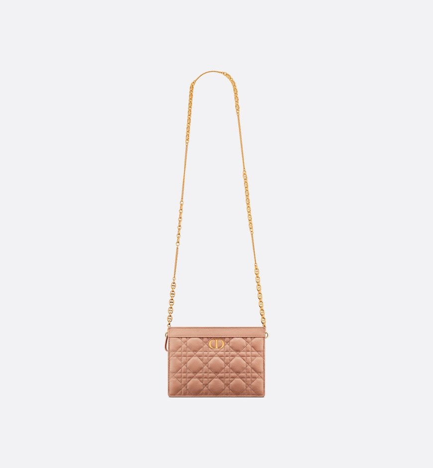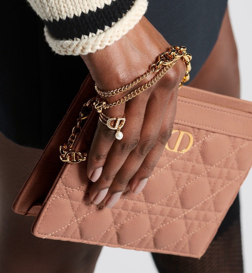 The Dior Caro Every Dior pouch combines a modern and functional design with the House’s codes of elegance. Crafted in Rose des Vents supple calfskin, it stands out with its hallmark Cannage stitching and a CD signature on the front. Thanks to a removable chain punctuated with CD chain links, the pouch can be carried by hand, worn over the shoulder or crossbody, and pairs well with other pieces from the same line.