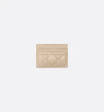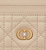 The Dior Jolie Freesia card holder is an elegant accessory from the House’s new line. Constructed in powder beige lambskin with Cannage stitching, it is accented by the CD signature embellished with a resin pearl. Featuring five card slots, the refined accessory will fit anywhere and can be paired with other Dior Jolie creations.