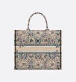 Introduced by Maria Grazia Chiuri, Creative Director of Christian Dior, the Dior Book Tote has become a staple of the Dior aesthetic. Created to hold all the daily essentials, the raffia style is embroidered with Pietro Ruffo’s blue Toile de Jouy Papillon motif, showcasing delicate butterflies in an elegant and dreamlike floral setting. Adorned with the Christian Dior Paris signature on the front, the large tote exemplifies the House’s savoir-faire and may be carried by hand or worn over the shoulder.
