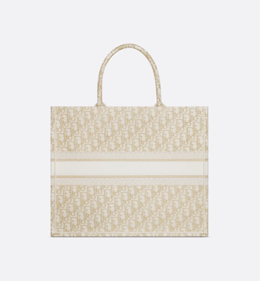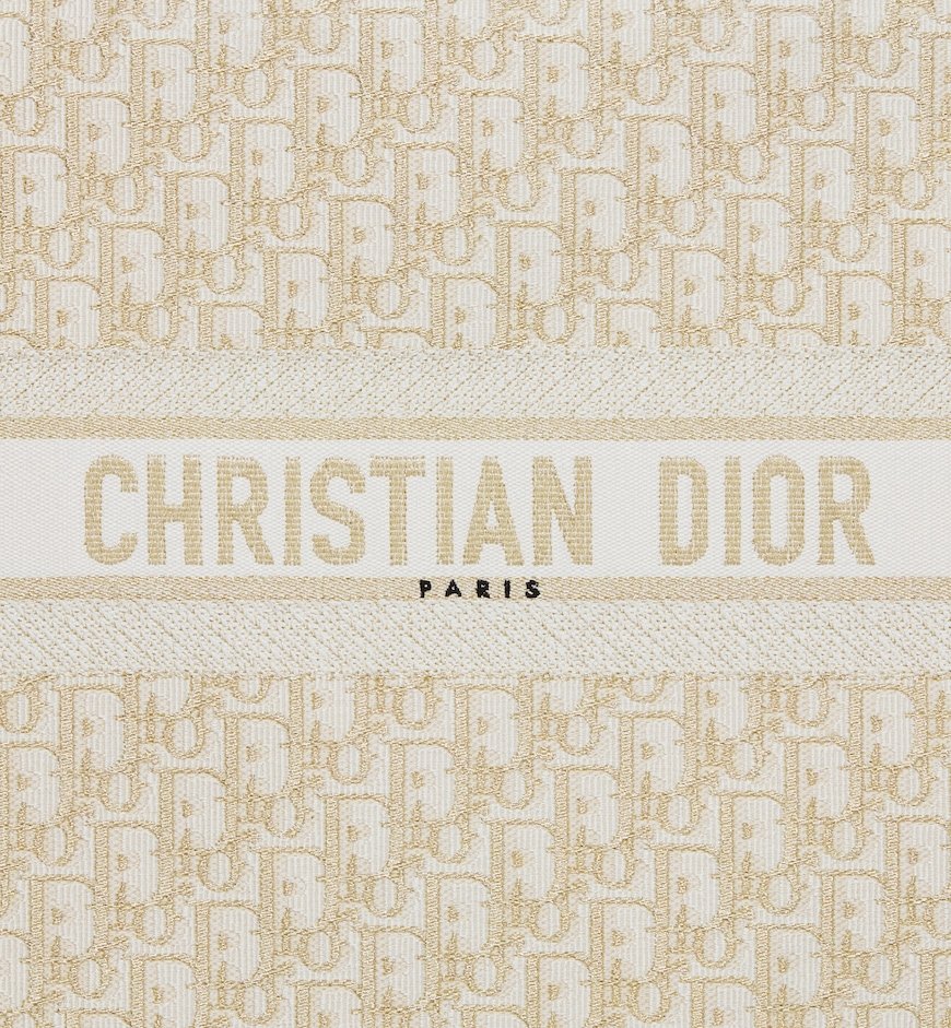 Introduced by Maria Grazia Chiuri, Creative Director of Christian Dior, the Dior Book Tote has become a staple of the Dior aesthetic. Designed to hold all the daily essentials, the style is fully embroidered with a white and gold-tone Dior Oblique motif. Adorned with the Christian Dior Paris signature on the front, the large tote exemplifies the House’s signature savoir-faire and may be carried by hand or worn over the shoulder.