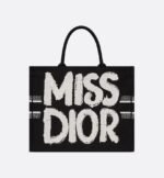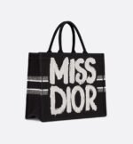 Introduced by Maria Grazia Chiuri, Creative Director of Christian Dior, the DiorBookTote has become a staple of the Dior aesthetic. Designed to hold all the daily essentials, the black style is fully embroidered with the white Miss Dior Graffiti motif, a nod to the 1967 debut ready-to-wear collection and a manifesto to Maria Grazia Chiuri’s signature celebration of feminism. The large tote exemplifies Dior’s savoir-faire and may be carried by hand or worn over the shoulder.