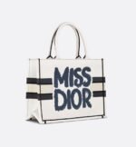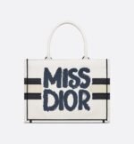 Introduced by Maria Grazia Chiuri, Creative Director of Christian Dior, the DiorBookTote has become a staple of the Dior aesthetic. Designed to hold all the daily essentials, the fully embroidered white style showcases the blue Miss Dior Graffiti motif, a nod to the 1967 debut ready-to-wear collection and a manifesto to Maria Grazia Chiuri’s signature celebration of feminism. The medium tote exemplifies Dior’s savoir-faire and may be carried by hand or worn over the shoulder.