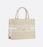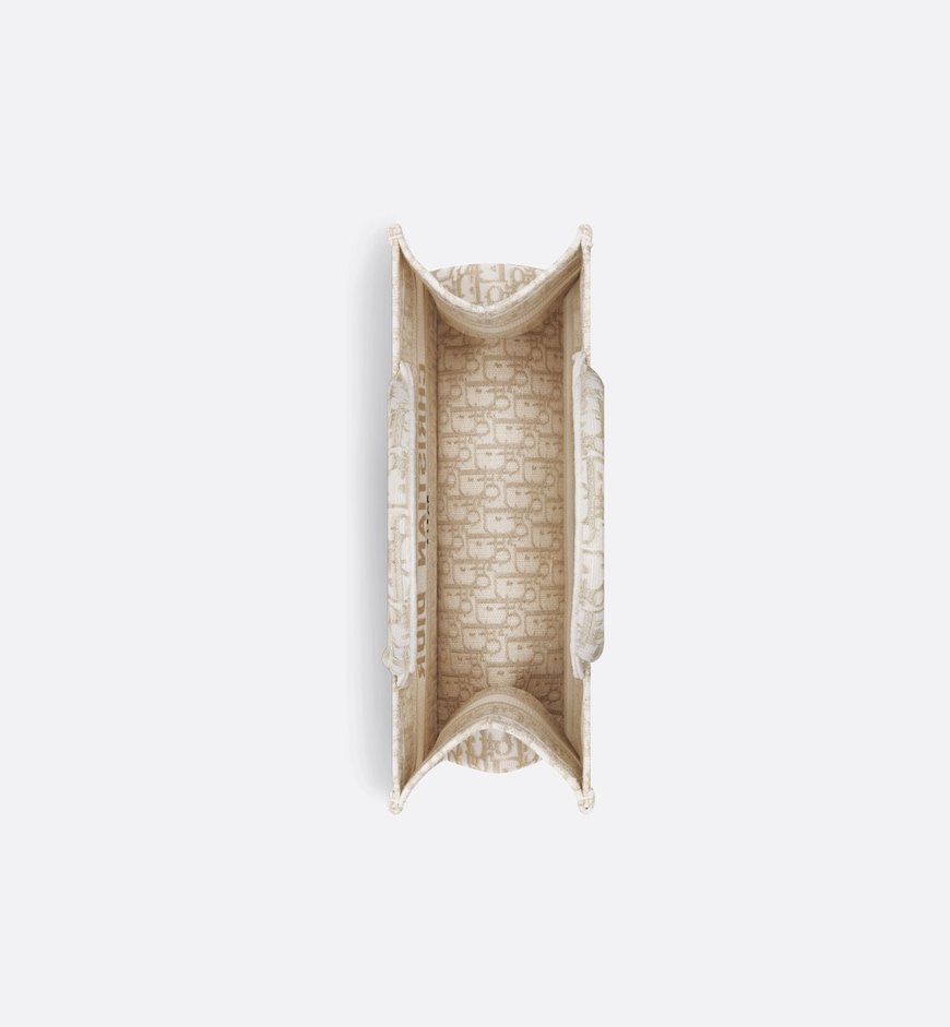 Introduced by Maria Grazia Chiuri, Creative Director of Christian Dior, the Dior Book Tote has become a staple of the Dior aesthetic. Designed to hold all the daily essentials, the style is fully embroidered with a white and gold-tone Dior Oblique motif and is further adorned with the Christian Dior Paris signature on the front. The medium tote exemplifies the House’s signature savoir-faire and may be carried by hand or worn over the shoulder.