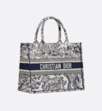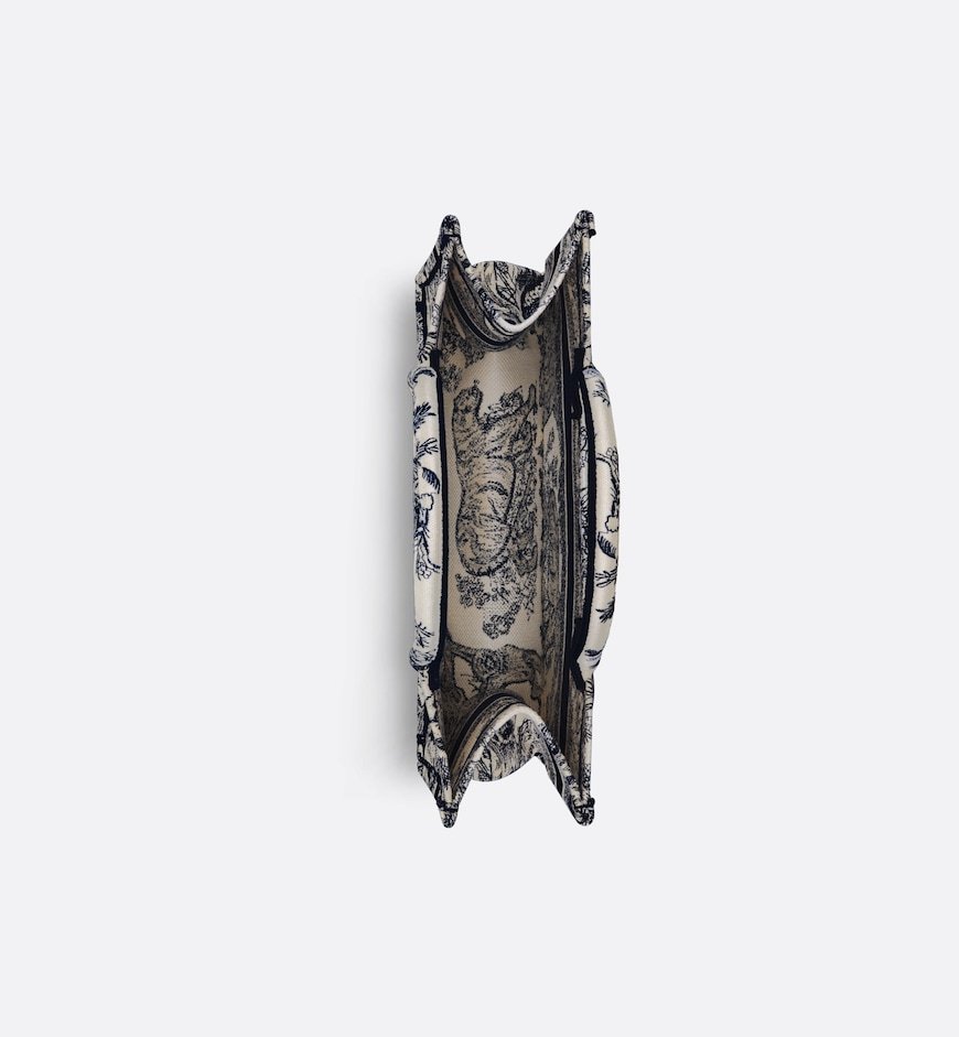 Introduced by Maria Grazia Chiuri, Creative Director of Christian Dior, the Dior Book Tote has become a staple of the Dior aesthetic. Designed to hold all the daily essentials, the style is fully embroidered with the ecru and blue Toile de Jouy motif enhanced by the Christian Dior Paris signature on the front. The medium tote exemplifies the House’s signature savoir-faire and may be carried by hand or worn over the shoulder.