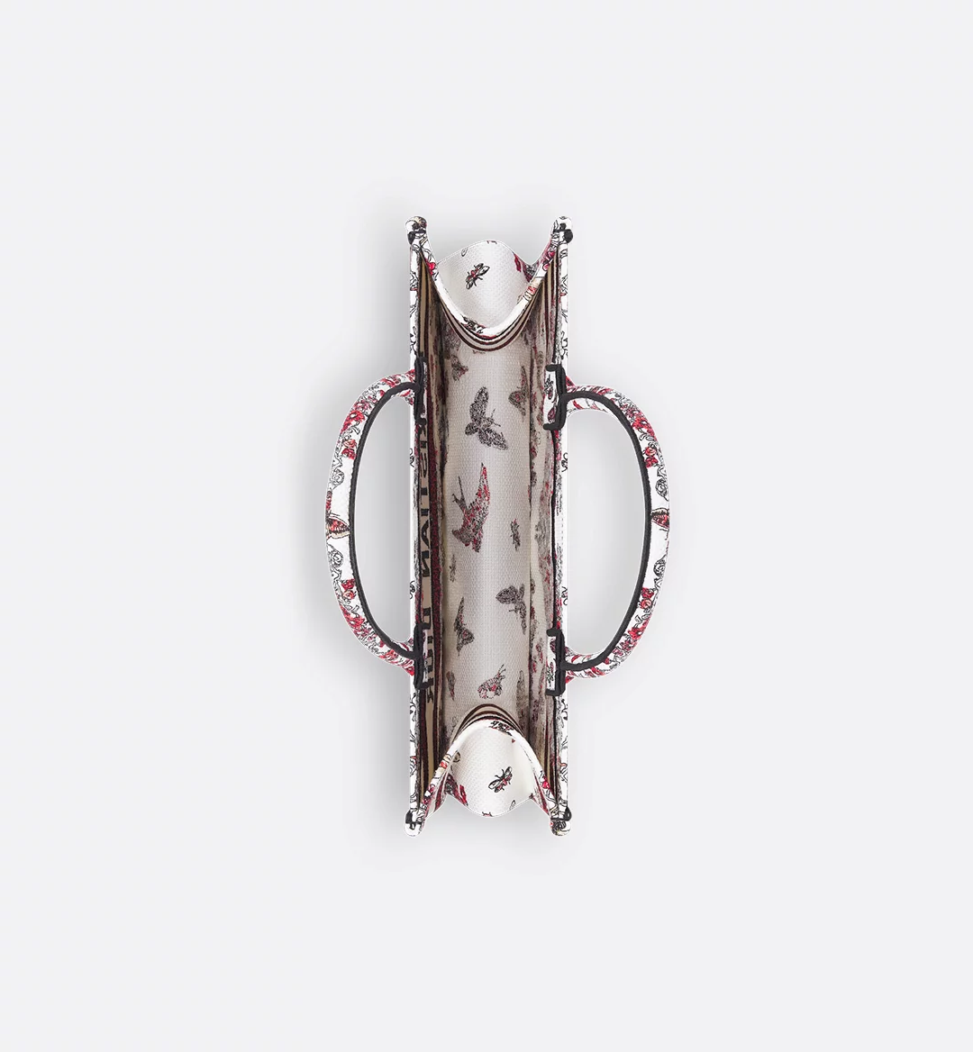 Part of the Dioramour capsule celebrating Dior’s vision of love and romance, the Dior Book Tote is a House classic designed by Maria Grazia Chiuri, Creative Director of Christian Dior. Designed to hold all the daily essentials, the latte style is fully embroidered with Pietro Ruffo’s multicolor Cur des Curiosités motif, showcasing a floral design elevated by symbols like the bee, butterfly and swallow. Adorned with the Christian Dior Paris signature on the front, the medium tote exemplifies the House’s savoir-faire and may be carried by hand or worn over the shoulder.
