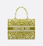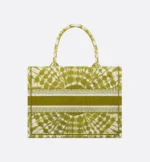 Part of the Miss Dior capsule, the Dior Book Tote is a House classic designed by Maria Grazia Chiuri, Creative Director of Christian Dior. Created to hold all the daily essentials, the style is fully embroidered in a colorful peridot green version of Maria Grazia Chiuri’s hallmark Tie & Dior motif. Enhanced by the Christian Dior Paris signature on the front, the medium tote exemplifies Dior’s craftsmanship and may be carried by hand or worn over the shoulder.