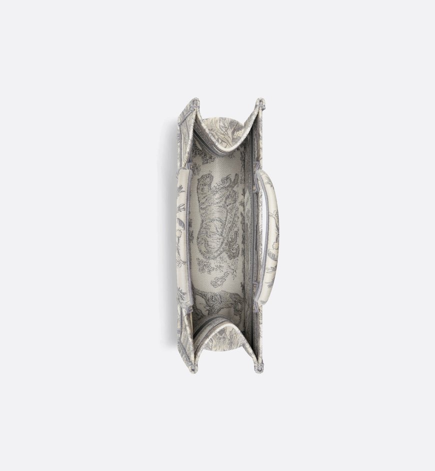 Introduced by Maria Grazia Chiuri, Creative Director of Christian Dior, the Dior Book Tote has become a staple of the Dior aesthetic. Designed to hold all the daily essentials, the style is fully embroidered with the ecru and gray Toile de Jouy motif. Adorned with the Christian Dior Paris signature on the front, the medium tote exemplifies the House’s signature savoir-faire and may be carried by hand or worn over the shoulder.