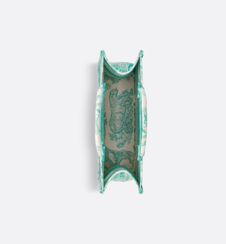 Introduced by Maria Grazia Chiuri, Creative Director of Christian Dior, the Dior Book Tote has become a staple of the Dior aesthetic and is part of the Dioriviera capsule. Designed to hold all the daily essentials, it is fully embroidered with the Toile de Jouy motif in aquamarina. Enhanced by a Christian Dior Paris signature on the front, the medium tote exemplifies the House’s savoir-faire and may be carried by hand or worn over the shoulder.