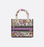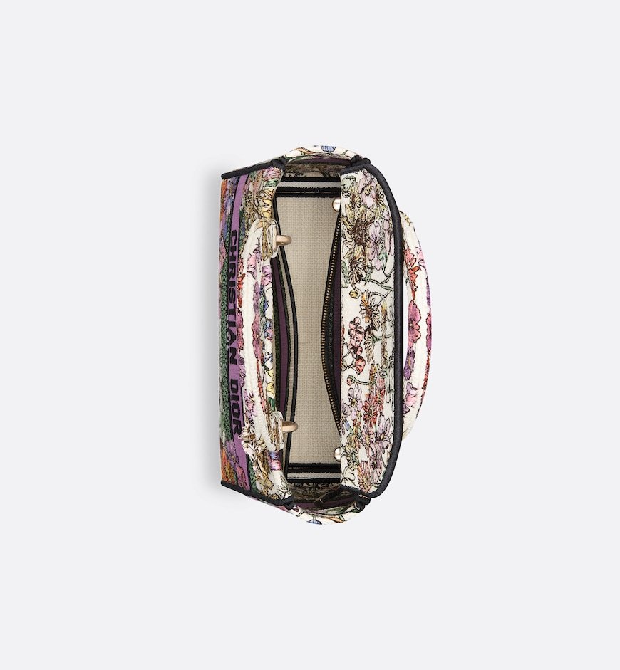 The Lady D-Lite bag combines classic elegance with House modernity. Fully embroidered, it features the white multicolor Dior 4 Saisons été motif by Pietro Ruffo, showcasing summery flowers and plants in a bucolic design. Pale gold-finish metal D.I.O.R. charms embellish and illuminate the silhouette. Equipped with a wide, removable embroidered shoulder strap, the medium Lady D-Lite bag can be carried by hand or worn crossbody.