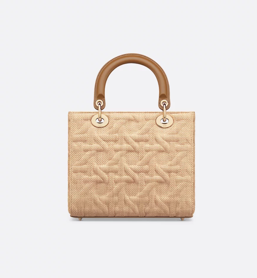 The Lady Dior bag embodies the House’s vision of elegance and beauty. Sleek and refined, the timeless style is crafted in beige raffia showcasing the Graphic Cannage motif, offering a modern 3D version of the House icon. D.I.O.R. charms adorned in camel leather embellish its silhouette. Featuring a thin, removable leather strap, the medium Lady Dior bag can be carried by hand or worn crossbody.