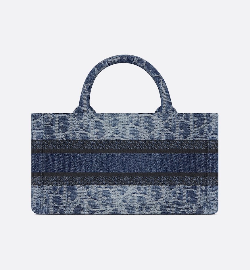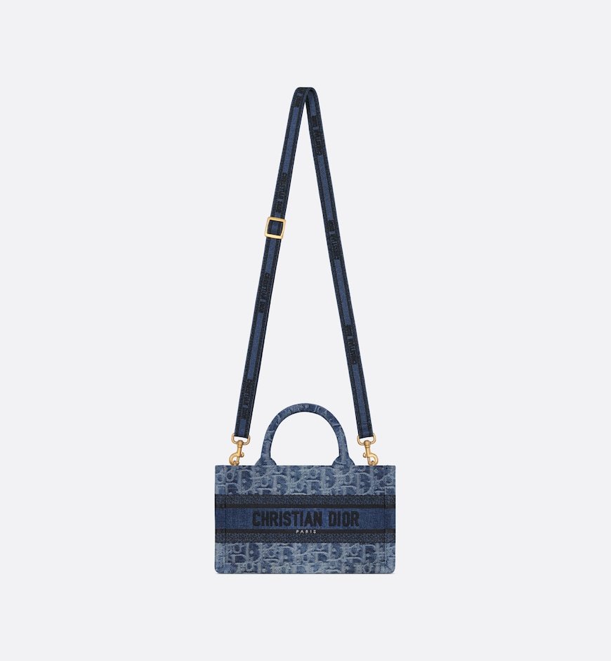 The Dior Book Tote is a House classic and original design by Maria Grazia Chiuri, Creative Director of Christian Dior. It is constructed in blue Denim Dior Oblique jacquard, offering a new take on the iconic House motif with the modern appeal of an irregular stonewashed effect. Adorned with the Christian Dior Paris signature, the miniature style exemplifies House savoir-faire and may be carried by hand, worn over the shoulder or crossbody thanks to its adjustable and removable strap.